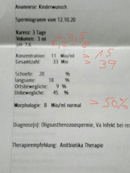 @lenickamimi44 mě u našeho spermiogramu napsali i hodnoty, od kterých je to normální, takže vše se dalo hned porovnat a i laik viděl rozdíly. S dovolením připíšu k tvému výsledku. Bohužel nemám všechna čísla, protože v našich testech nemáme rychlé, pomalé, točící se na místě a nepohyblivé spermie. Namísto toho zjišťovali celkovou pohyblivost, pohyblivost vpřed, životnost...