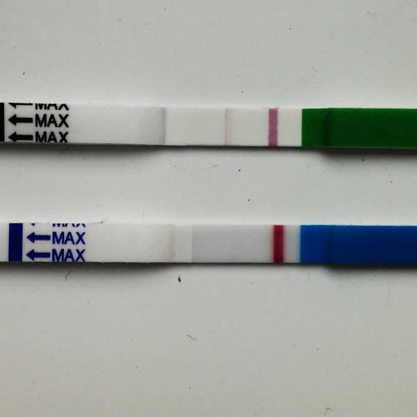 Jelikož jsem nedočkavý typ ženy, tak hned 11 DPO jsem si ráno udělala test značky Livsane, který se dá udělat 4 dny před očekávanou MS. Nejdříve nic nebylo vidět, ale odpoledne, když jsem test chtěla vyhodit, tak jsem si všimla lehkého ducha (viz foto). Myslela jsem si, že je test vadný a dnes 13 DPO neboli den před mou MS, jsem si udělala LadyMax test a po 3 minutách vylezl duch výraznější.