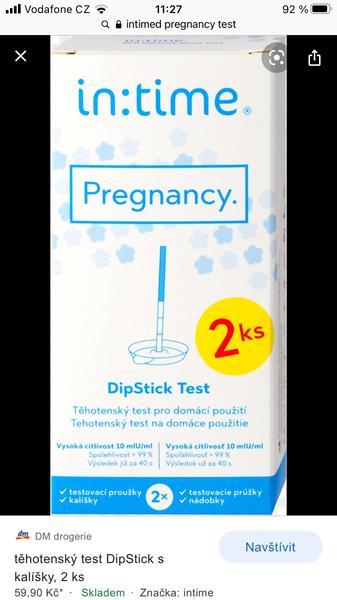 @pajasala v posledním příspěvku ano, ale v úvodu diskuze jsem několikrát psala Intime🙂 ale nevadí, výsledek to stejně nijak nemění. Duch nebo slabá čárka mi vyšla uplně na každém testu, i jiných značek, nechce se mi tedy věřit, že by to bylo všechno pouze falešně pozitivní. To, že čárka nesílí, je ovšem neoddiskutovatelný fakt. Nezbývá tedy než doufat, že i přesto je vše v pořádku (našla jsem i zkušenosti žen, kdy jim čárka nesílila a těhotenství bylo i tak v pořádku (některé dokonce měly opakovaně negativní testy ikdyź těhotné byly)). Uvidíme ve středu🙏