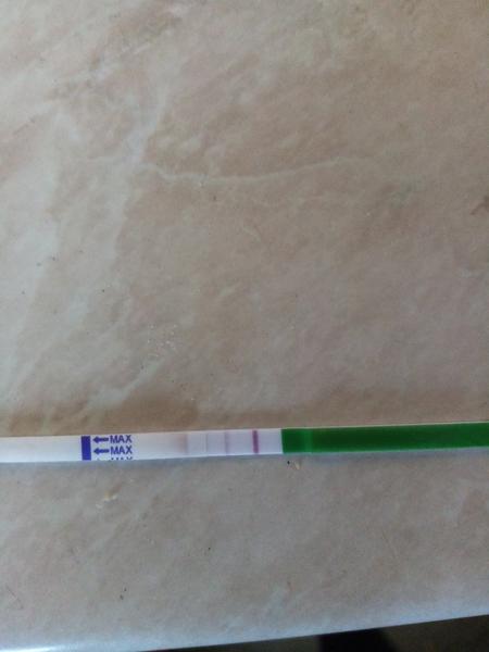 tento ovulační test jsem měla 2 dny před menstruací....obyčejný těhotenský test mi čárku ukázat až 4 dny po vynechání ms...omlouvám se za fotku, je trochu rozmazaná, ale snad něco z toho bude vidět...