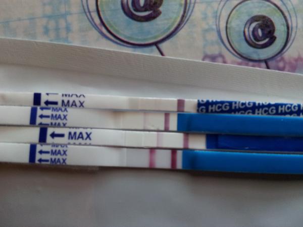 Prosím také o radu. Poslední menstruace mi začala 8.5., menstruace nikde a dle bazální teploty jsem ovu měla asi 4.6. Mám nepravidelné cykly, tak mě to nepřekvapuje. Dne 10.6.jsem byla na UTZ a nic nebylo vidět, děložní sliznice 10mm a dostala jsem injekci. Za dva dny jsem si dělala test a hle, malý duch 🙂 Clear blue ukázal + a oplození před 1-2 týdny (tedy toho 4.6.). Dne 13.6. jsem šla na krev a udělala si další test (2.od shora). Druhý den další a v pondělí teb poslední na fotce. Když jsem pak v pondělí volala na výsledky a nečekala jsem špatnou zprávu, protože test sílil... ale řekli mi, že mám hcg jen 132, 8 a že je něco špatně, protože je to málo... holky, co vy myslíte?