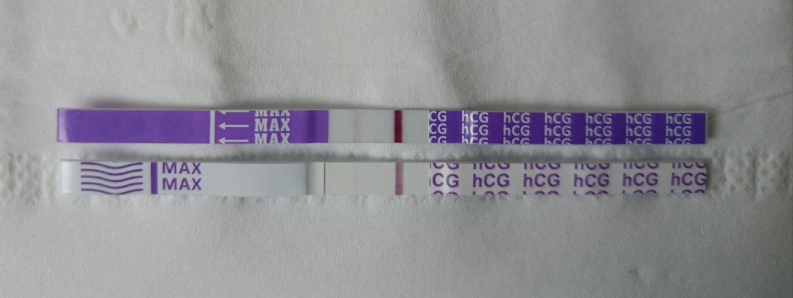 Ahoj, potřebovala bych poradit. Minuly cyklus jsem 3.-7. den brala clostylbegit. Pak jsme byla na měření folikulů,byly tam dva. Dalsi den 25.2. jsem si pichala Ovitrelle. 12.3. jsem to mela dostat a taky me bolelo břicho,zacala jsem tmave spinit.Tak jsem si říkala a je to tady. Dalsi dva dny jsem krvacela,bricho bolelo. V nedeli uz spineni. Začalo me ale pnout v prsou a celkove ta MS byla nejaka jiná. Jindy fakt trpim a jdou ze me i srazeniny. Tak mi to nedalo a včera večer jsem zkousela test. Posilam fotku. Dole je včerejší večer,nahore je dnesni test z rana.