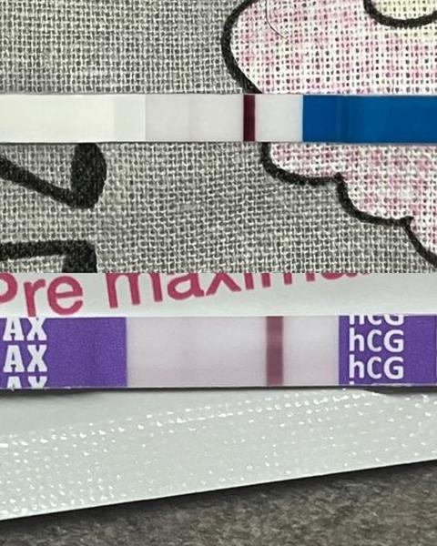 Menstruaci jsem dostala na den presne, ale jen na 2 dny a velmi slabounkou. Jen spineni na intimku. Horni test se takhle vybarvil az po zaschnuti, druhy temer nic a treti je za me relativne slusny duch. Jasne ze si udelam dalsi test za 2 dny, ale zajimal by me Vas nazor/zkusenost?
