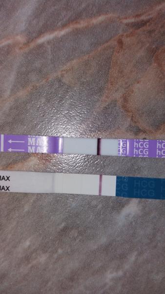 Na horním nevidím nic,spodní mírně duch...ale testy jsou jiné druhy,asi bych dělala testy stejného druhu.A pokud dobře vidím horní je GS Mamatest?😉 a ty jsou většinou(z těch obyčejných) nejpřesnější.