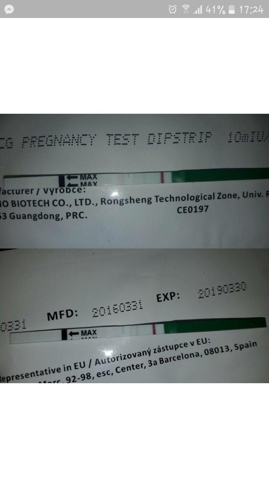 já zase měla takovouhle čárku když jsem měla 2 dny zpoždění,testovala jsem ještě 3x pokaždý po týdnu a i v době kdy jsem byla v 9 týdnu byla takhle slabá🙂