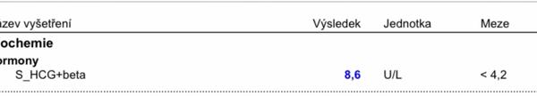 Zdravím cca před týdnem jsem si udělala těhotenské testy a všechny mi vyšli tak že tam byl duch který potom začal sílit a dneska jsem byla na krvi a hcg beta mám 8,6 a meze 4,2 jsem tedy těhotná a nebo ne ?