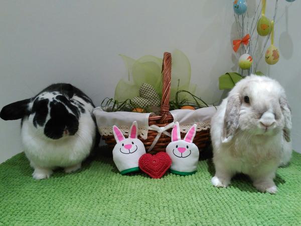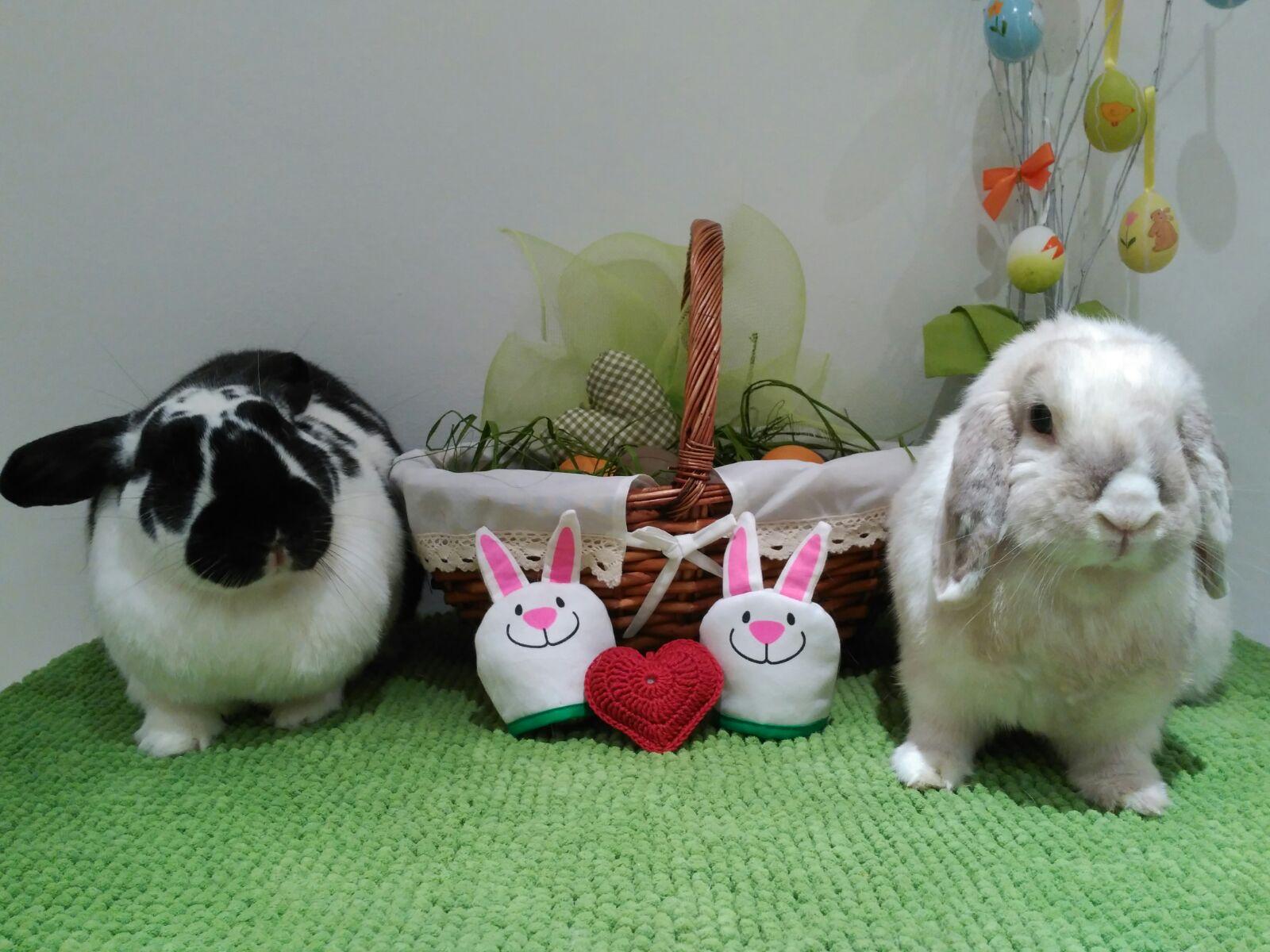 Ten králíček už má skoro 10let a málem nám umřel, ale nakonec to zvládl, ale od července s ním litame na veterinu. Jmenuje se Nano (Nanýnek 🙂 ) a taky mám ještě Bertu, ta je 2x tak velká a je to taky velký mazel🙂 Takhle jsem je fotila na velikonoce😀