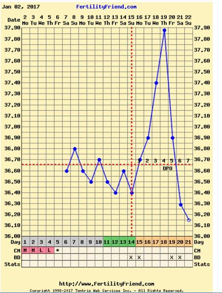 @nadrinka Ahojky! Graf už ti neukazuje ovulaci, protože ti klesly teploty. Po ovulaci se musí držet nahoře, a když potom cca.kolem 15 DPO spadnou, tak přijde MS. Možná ti teplota takhle vyskočila, protože jsi byla nemocná. Třeba ovulka přijde později, nebo bude tento měsíc anovulační. Neboj, říká se že každá žena může mít občas anovulační cyklus. Rozhodně pokračuj v měření. Držím ti palce.