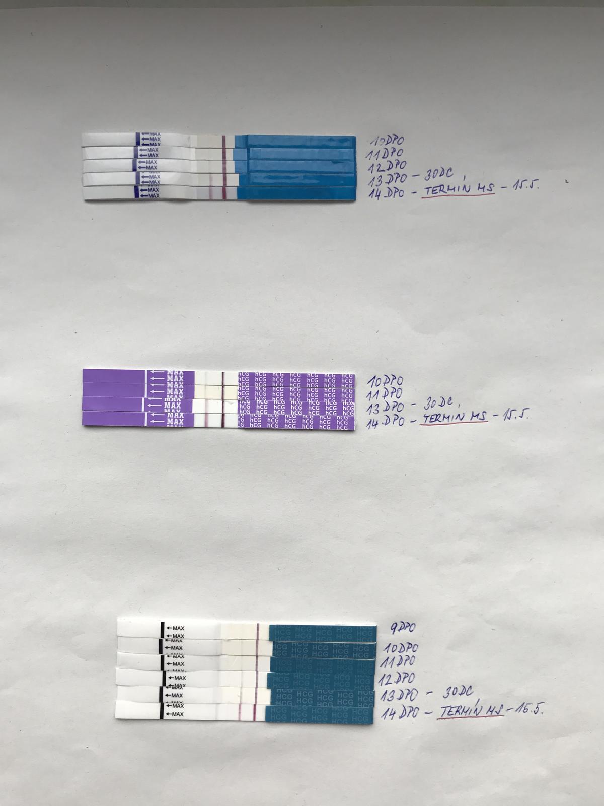 Dnes 11dp hcg 63,2...;) a testik ❤️🙏 Termín MS za 2-3dny, tak snad 🙂
