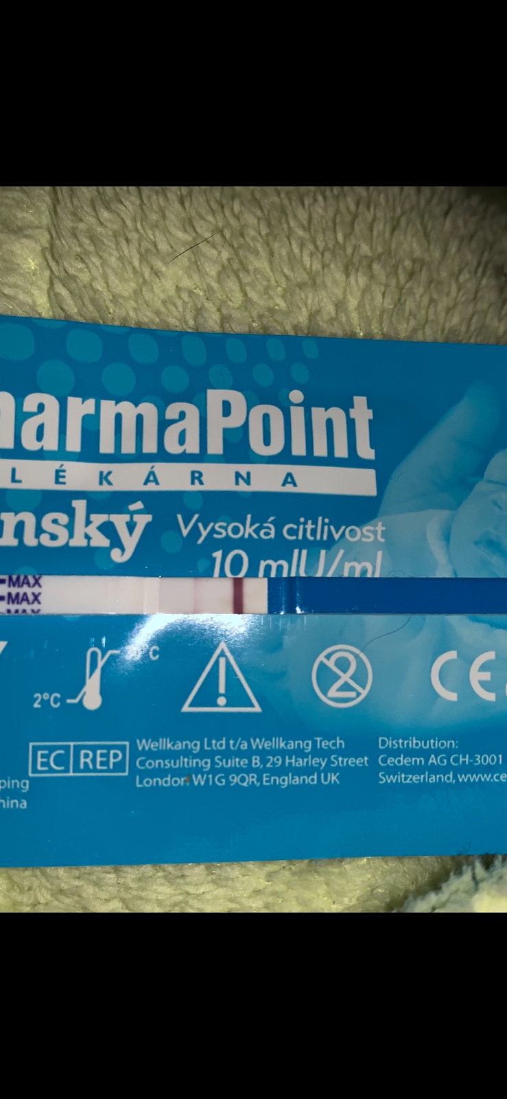 Ahoj holky. Prosim. Mám na vás dotaz. Jsem dnes 37dc. Menstruace mi mešká. Od pátku mě bolelo břicho ale ms nepřišla. V nedeli jsem zaspinila,v pondělí nic a včera také lehce. Intimka by mě stačila na všechny dny..jen taková hnědá šmouha na vložce. včera po zavedení prstu jsem měla lehce hnědý výtok a na prstu mi zůstaly dvě nitky krve. Víc nic. Předtím jsem měla téměř průhledný hlen s lehce bílým vzhledem ale spise byl průhledný. Dnes jsem si dělala test a nevím zdali je to náznak druhé či jen její ryska. Je vidět o trochu více než na fotce. Ms stále nikde. Včera v práci jsem měla návaly horka takže bez větráku sem nemohla existovat, polest podbřišku je už minimální.. včera a dnes jsem celý den hrozně unavena... Co myslíte?