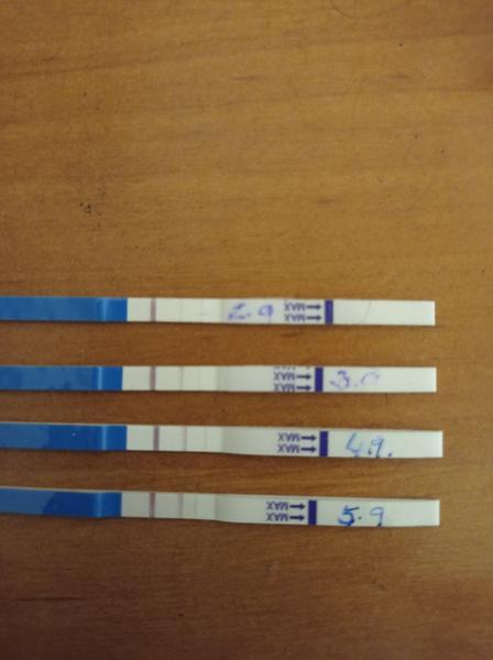 26. 8. jsem si dělala test, viz foto, 30. 8. jsem si chtěla udělat další, zda sílí, ovšem čárka byla zhruba podobná, neviděla jsem moc rozdíl. Chtěla jsem to rozseknout digitálním, výsledek tedy + 1-2. Napadlo mě díky tomuto výsledku, zda prostě ovulace neproběhla až později, proto jsou zatím slabé čárky? Nebo raději nemám s ničím počítat?