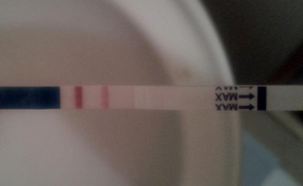 Tak holky, přikládám test z dnešního rána. Je to trochu nepovedená fotka, ale vidět to tam je. Tak si říkám, že už to nemůže být náhoda, vychází mi to takto třetí den po sobě. Zítra ještě zkusím jiný test a asi ještě ten ClearBlue a pak asi už k Dr. 🙂