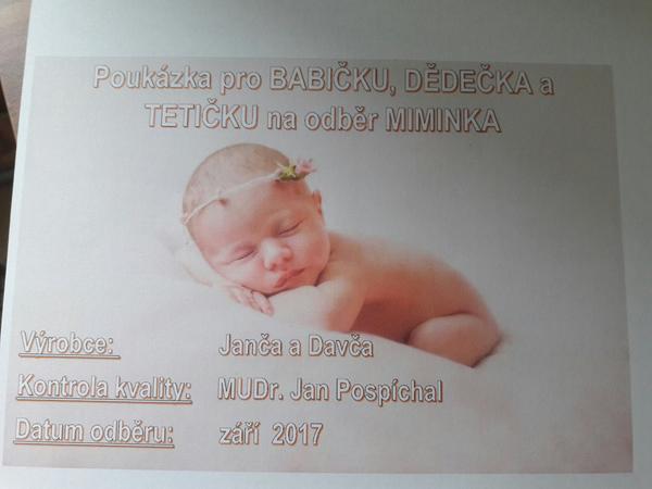 Ahoj holký tak mám od doktora i z krve potvrzene těhotenství. Na ultrazvuku bylo něco vidět ale je to ještě maličké mělo to 4mm, takže na další ultrazvuk jdu příští týden v pondělí a to už si nechám napsat i neschopenku. Jinak by jsme to i v to pondělí chtěli oznámit rodině. Udělali jsme dneska takové poukázky stim, že by jsme to chtěli nechat vyvolat jako fotku a dát to do obálek. Co myslíte? 🙂