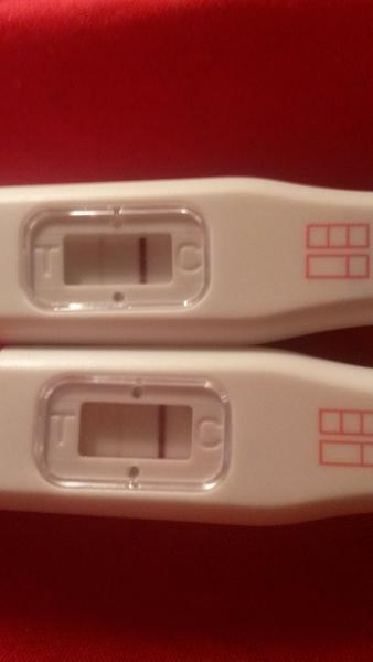 Ahojte... 31.5 som mala trojdnove divne spinenie namiesto ms... Bolo to divne, kedze mavam ms 8dni aj 9.... divne bolo aj to, ze BTT neklesla ani pocas spinenia a vlastne stale az dodnes sa drzi nad 37st... Tak som si spravila par dni po spineni test a vysiel duch, ale viditelny.. Skusila som o dva dni a zase o trosku ciarka ztmavla, tak som sa zacala tesit... No na dalsi den /asi 35dc/ som zacala spinit a kedze som uz zazila MA, sla som radsej ku gyn... Na usg nevidel nic a hcg z krvi vyslo 0,14 ☹ No dnes mi to nedalo a skusila som znova test, ale z poobedneho moca a ciarka nabehla hadam za 10s, ale stale taka slabsia, vid foto... Skusim este zajtra rano, ci zosilnie, ale je to zvlastne... Priznaky v podstate ziadne, len ta zvysena bazalna tt.