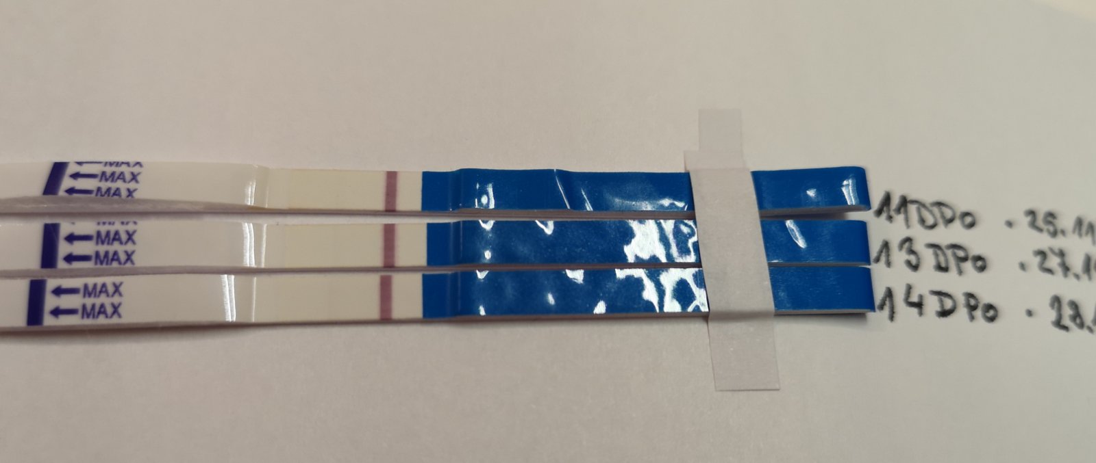 Ahojky holky, jdu se poradit co si o tom myslíte. Je to naše první snažení po úmrtí miminka ve 25tt (zauzleny pupecnik, měli bychom být oba zdraví) 😔 takže si prcka moc přejeme... Cítím se pořád nemocná, popichuje mě v podbřišku a asi mi občas spadne tlak a přestalo mi opět chutnat kafe, jsem taková podrážděná. Dle BT byla ovu zřejmě 14.11 (11DC). Dnes jsem 14DPO (26DC)....delala jsem test v neděli, včera a dnes. Pořád jsem si říkala že nic, ale pak jsem zaostrila a dala je k sobě.... Myslíte že je to sílící mini duch? Zkoušela jsem jeden i včera večer, kdyz jsem před tím dost pila a byl baprosto snehobily... Trochu mě to vyděsilo, ale zase to aspoň znamená, že tohle zřejmě nejsou jen drážky a moc byla jen hodně naredena... Už i manžel to tam vidí 😁 ale víte jak to je, bojím se jestli si to jen moc nepřeju