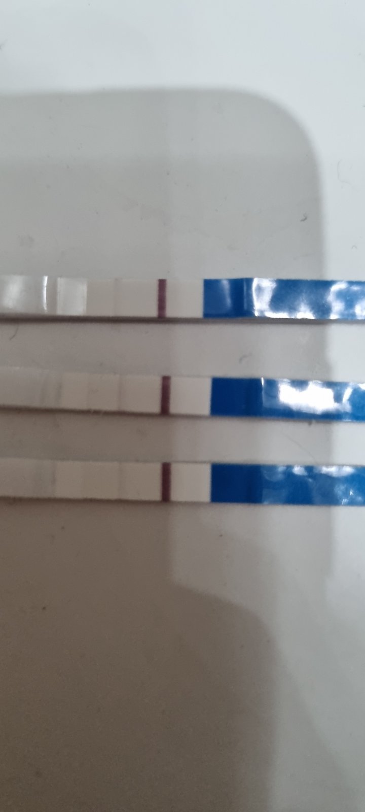 K tem testum- ono je to asi patrnejsi na zivo a ta fotka to zkresluje. Opravdu je test ze ctvrtka slaby stejne jako je ten uterni a ten stredecni tam tak lehce "vycniva". Ikdyz slabe carky jsou to asi jeste vsechny. Ani nevim, jestli by to takhle melo touhle dobou vypadat a jestli bych tam uz nemela mit carky silnejsi.