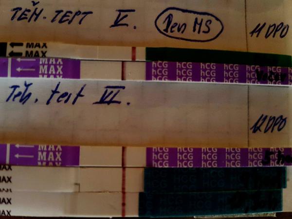 @monikadeny ne ty první dva jsou 12dpo - ráno a večer. Pak už jsem testovala jen ráno....ale jak vidíš 13dpo už je vidět dost a digitál byl negativní...taky mě tu holky dost držely, že to bude dobrý....