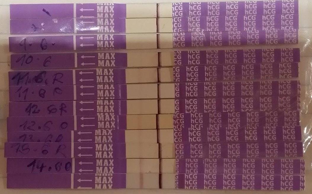 @rosalline Ahoj tak vypadá to takto...snímek dole ty poslední dva jsou z dneška ale az odpo a vecer nemela jsem uz těhu testy...zatím to vypadá dobře musím zaklepat....doktorka mi dnes těhu potvrdila v pondělí uz jsem měla v krvi 73 hcg a vemte si ze na testu jeste jen slaba carka...ta krev je tutovka...a to bylo ponděli teprve 11 dní po oplodnění....tak ted se jen modlit at se zahnízdí ještě není a at se udrzíííííí je to k zblaznění kdyz uz jsem tak daleko tak daleko jsem jeste nebyla....dnad se to zase nepokazí...jo a dostala jsem v ponděli injekci a ve stredu dnes taky neco na udrzeni a zavadim si do pochvy Gynprodyl...máte s tím některy zkusenosti? A nevíte jestli muzu sexovat?