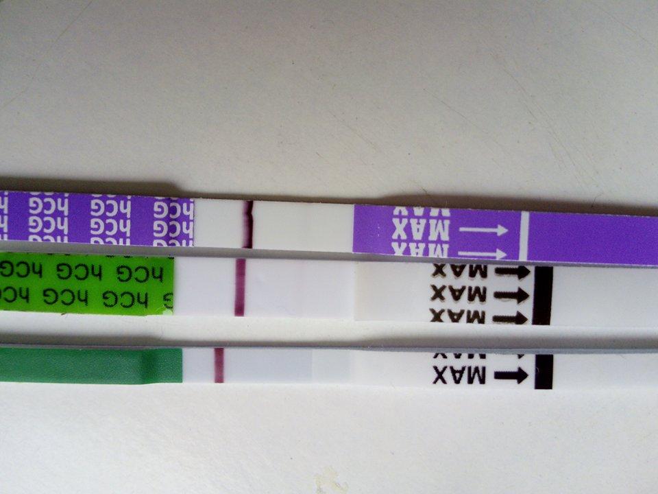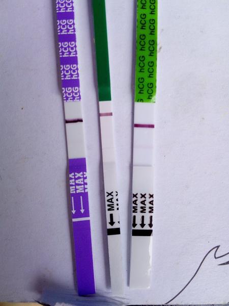 holky mám prosbu dneska bych měla být 13 nebo 14 dpo, před 2 dny na testech nebylo nic, včera měla dorazit ms nedorazila, bt včera poklesla a dneska se zase vyhoupla nahoru, takže jsem mazala pro testy, koupila jsem 3 druhy mamatest, pepino a intimed ( ten je 25 jednotek )když jsem přišla domů všechny 3 druhy jsem udělala z jedné moči , ne ranní a výsledek je na fotu, dle jiného fora je to prý na 13-14 dpo slabé, co myslíte vy, podotýkám že fotak v mobilu stojí za prd