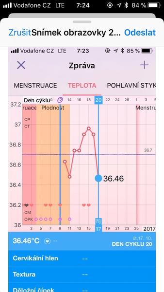 Tak teda nevím jak to s tou ovulaci je....teplota stoupla 15.10. to byl test ještě negativní a teplota se drží nad 37 a dnes je to treti den výších teplot ...přidávám foto a prosím o názory kdy proběhla ovulka 🙂 včera večer hrozně křeče až do konečníku (vzala jsem si i Ibalgin ) sexík proběhl v půl deváté večer,nohy nahoře asi hodinu až se mi odkrvivali nohy 😉