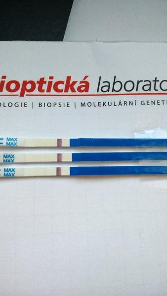 ahojky lidičky, doufám, že neotravuji, ale snad mi poradíte... přikládám fotku pořízenou minulý týden ve čtvrtek, tj. 4.9. zelený je ovu... teňulinkou čárku tam vidím, ale přikládám i vám ať můžete zhodnotit... protože dnes jsem si dělala test s nižší citlivostí (až odpoledne) a ten je sněhobílý... tak co myslíte? díky za vaše odpovědi 🙂