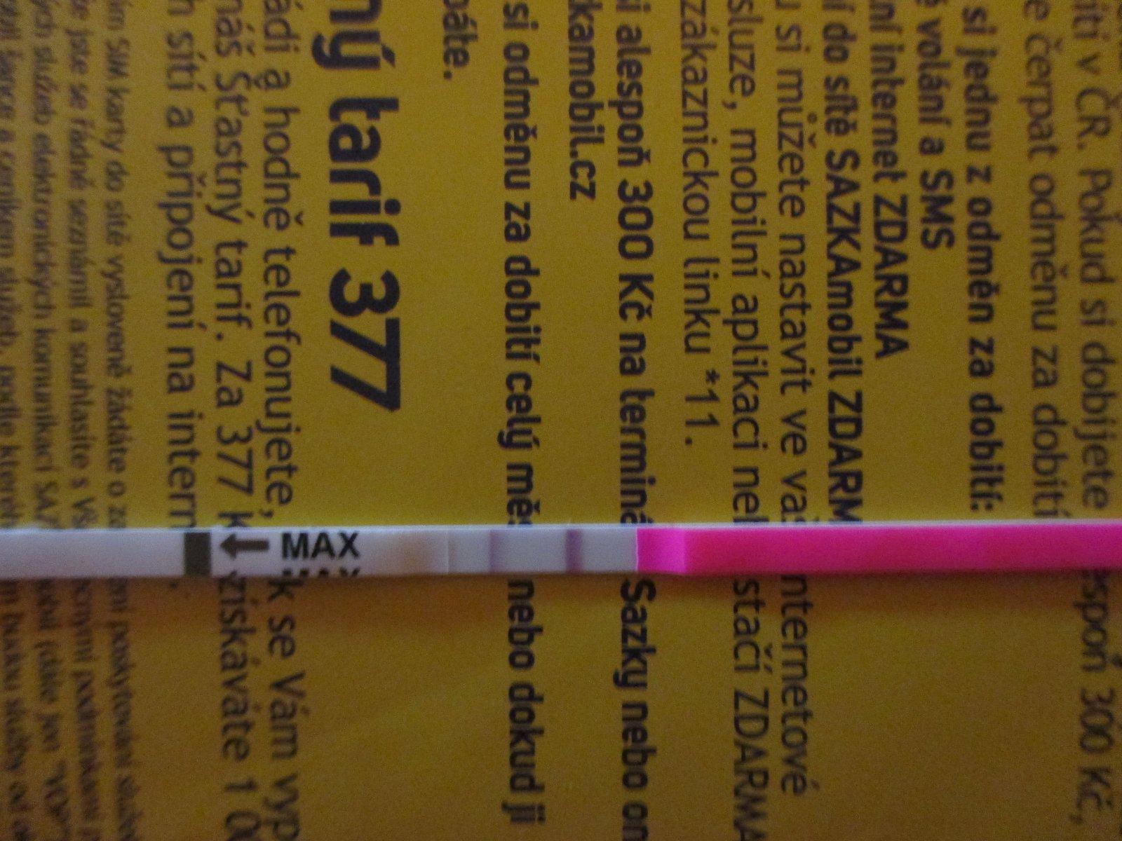 Ahojky holky,snažíme se 3. měsíc o druhátko a pokaždé,když jsem si dělala testy,bylo sněhobílo.Ale dnes jsem 8-9DPO a zkusila jsem nedočkavě test (vím,že bych měla testovat až po vynechání,ale počítám se všěemi variantami 🙂 ) A zdá se mi,že vidím ducha.Ve skutečnosti ho vidím krásně a vyskočil v limitu.Pokusila jsem se ho vyfotit,jestli mne nešálí zrak...vidíte taky něco,nebo jsem si ho tam vyšilhala? 😀