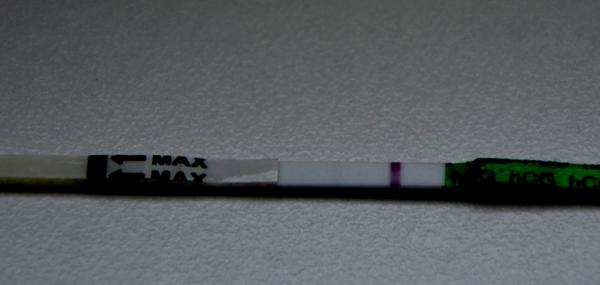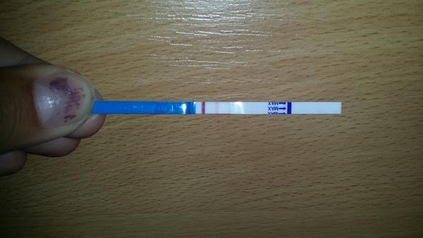 ahojte, ešte stale mi neprisla ms a vcera som bola u doktorky na hcg z krvi mala som len 0,01mlU ale dnes som si robila test a ukazala sa tam slabulinka čiarka. prikladam fotku aj ked v skutočnosti to vidno lepsie