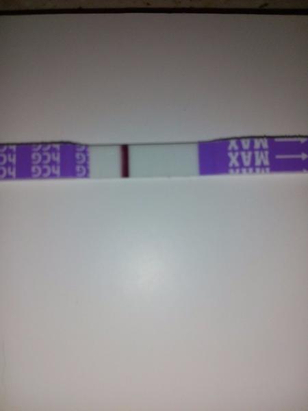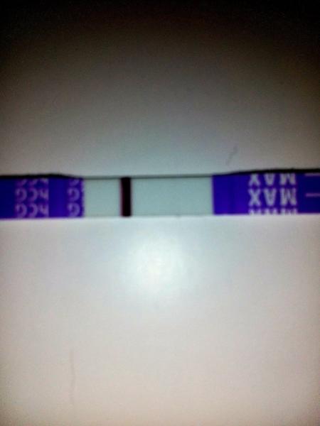 No já tam tedy něco vidím 🙂 Ale nejsem taky moc zkušená s lovením duchů 🙂 Jako můj test dneska z rána, taky bych měla dostat MS až za 6 dní. A vidím tam něco co, tak Ti držím palečky aby to vyšlo 🙂 Přidávám svou fotečku pro porovnání, nešlo to skoro vyfotit, je to vidět spíše v reálu než na fotce. Sexujeme skoro ob den, takže uvidíme 🙂
