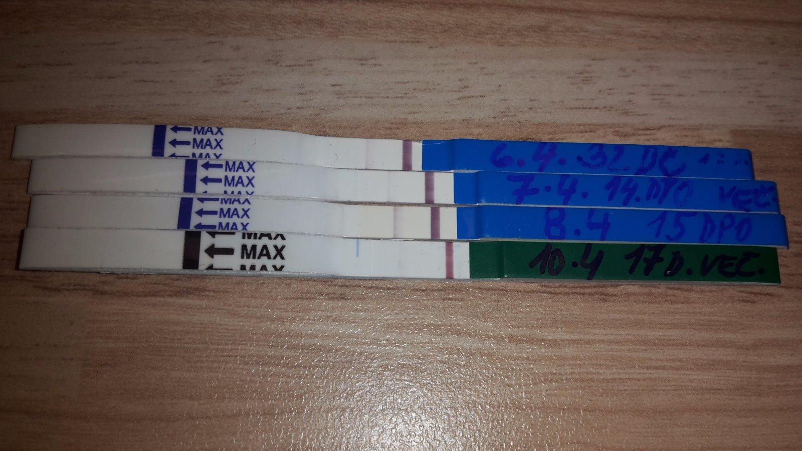 Holky mam prosbu. Raduju se, ze mam konecne 2 carky. Pekne sili. Ale dnes odpo sem si udělala jiny druh testu a carka dost slabá. ☹ krvácení zadne... Myslite, ze nejaky problem? Rano si chci udelat clear blue s ukazatelem tydnu a k dr. jdu az 18. Jsemv3 dny po vynechani ms a testy 7. a 10.4. Jsou vecerni. Dekuju moc.