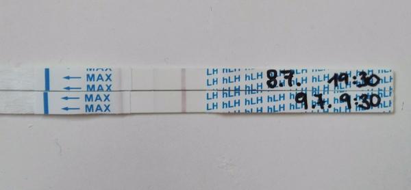 Ahoj holky, sem to sice úplně nepatří, ale třeba mi k tomu něco řekněte. Dnes jsem 44DC po revizi, MS nepřišla, příznaky mám spíš na těhotenství nebo ovulace než blížící se MS. Jenže ovulační testy vypadají takto, v reálu je to trochu silnější než na fotce..co si o tom myslíte? Že ovu teprve přijde, nebo už proběhla, nebo co si o tom myslet?