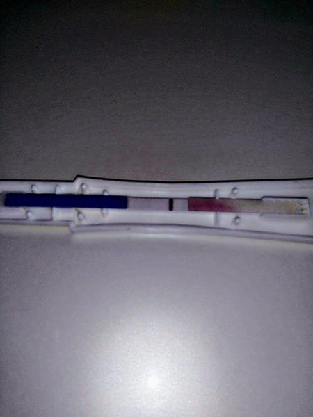 Holky co myslíte, je tam něco vidět? mám pocit, že je tam slabý duch. Testovala jsem až na třetí ranní moč, dnes bych to asi měla dostat, ale nemám to ještě pořád. Nechtěla jsem se testovat dnes, chtěla jsem ještě počkat, ale manžel se chce tulit a já sem testla, abych věděla jestli to dostanu nebo ne, protože kdybych byla těhotná, tak se tulení bojím, protože po něm jsem letos, když jsem byla těhotná začala krvácet a nakonec jsem o miminko stejně přišla.