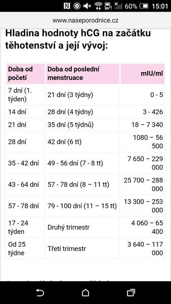@lucianek123 tak mame opacny problem ja mam strach ze je nizk a ty že je visoky ale me muj doktor řekl že je brzy tam neco videt..a stalo se mi to i u dcery testy pozitivni ale na ultrayvuku nikde nic až po par dnech se tam ukazal vacek 🙂..spis mam strach o mimideložni ale predpokladam že ne...uklidnuji se tim že dve tehotenstvi byli vpohode tak treti bude taky...ale uprime u holek sem se takhle nehlidala jako ted ☹