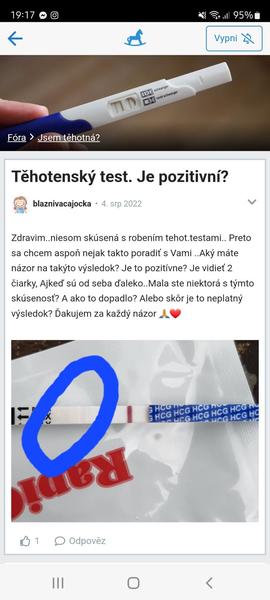 Zdravim..niesom skúsená s robením tehot.testami.. Preto sa chcem aspoň nejak takto poradiť s Vami ..Aký máte názor na takýto výsledok? Je to pozitívne? Je vidieť 2 čiarky, Ajkeď sú od seba ďaleko..Mala ste niektorá s týmto skúsenosť? A ako to dopadlo? Alebo skôr je to neplatný výsledok? Ďakujem za každý názor 🙏❤