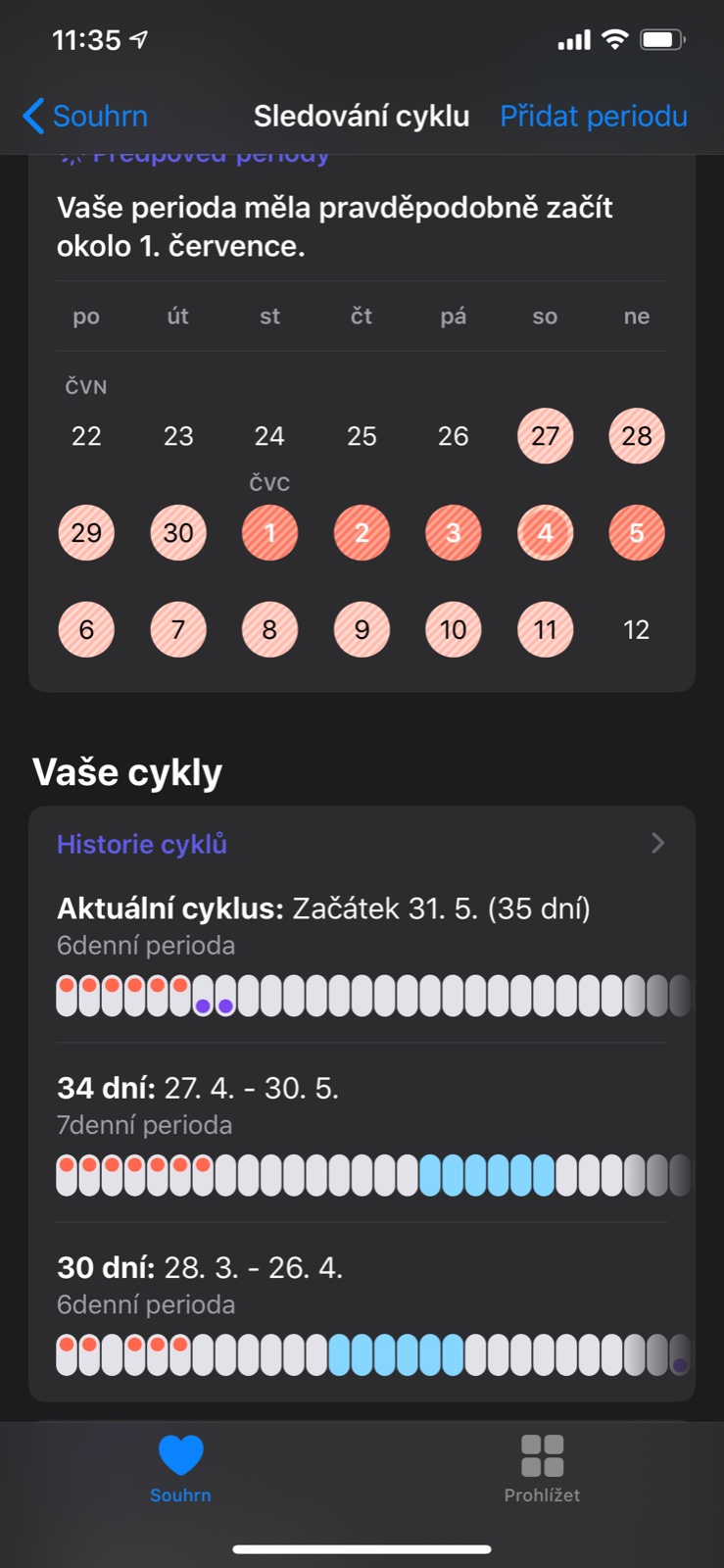 kdy je čas na to udělat si test? Menstruaci si zapisuju do aplikace v telefonu a nijak moc to neresim protoze se zatim o dite nesnazime. Ale poslednich 10-14 dni na sobe pozoruju bolesti hlavy, unavu, chvilema i paleni zahy, nafoukle bricho..a tak jsem si rikala jestli nahodou nemuzu byt tehu. Podle aplikace menstruace mela prijit 1.7. Posilam screen jestli myslite, ze je teoreticky cas udelat si test? Omlouvam se asi za hloupy dotaz ale uprimne receno tomu moc nerozumim 🤷🏼♀️😃