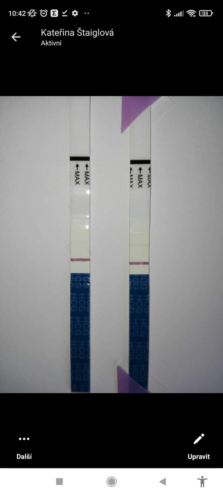 @karkulka1283 Prave ze v pondeli tam byl mini duch a v utery uplne skok to je ta druha fotka takze tam to slo pekne ale pak uz jsem nemela mamatesty jen dr max test, a tam se mi udelal uplne slabej duch tak sem si rikala co to je a a sla za dve hodiny udelat znova a byla tam pekna ruzova carka asi jak na te druhe fotce mozna vic no a prave vcera me udelal to same.. takze to uz nekupuju, tak me pritel skocil pro mamatesty a ty jsem delala vcera jenze hodne piju takze carka byla vecer cca jak v utery jestli je to moc naredene nevim🤷♀️ Ted si pujdu udelat hned rano tak jsem zvedava dam fotku.. ms mela byt ve stredu taky me to od toho uterka prijde divne ale uklidnuju se tim ze jsem delala jiny testy, melo by se testovat tema stejnyma kazdy ma jinak barviva 😏