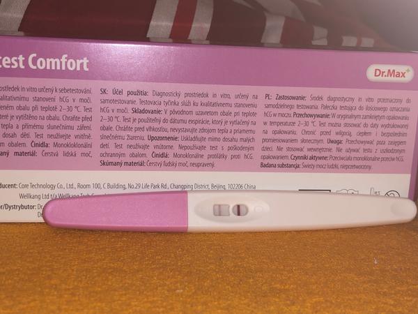 Mám o tři dny zpožděnou menstruaci, a na testu mi vyšlo tohle. Ukázalo se mi to v limitu, asi po dvou minutách. Vidíte to taky ? Normálně nám cyklus pravidelný jak hodinky, 31 dní, proto jsem si udělala test. O mimi se snažíme tři měsíce.