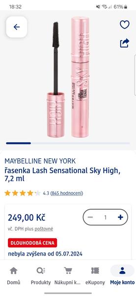 Právě na zdejší doporučení jsem si tu Maybelline sky high koupila a teda velké zklamání. Plastový řídký kartáček ráda nemám, ale říkala jsem, si zvyknu si. Namalované řasy si dovedu představit hezčí, ale možná je to rukama? Každopádně odličovač mám asi taky nanic, řasenka zůstává ve žmolcích až 4 dny, když se nemaluju. No budu muset hledat dál...