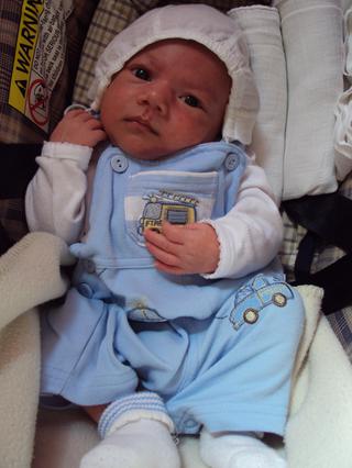 ahoj holky, tak dneska jsme byli na kontrole a vidím, že i naše kojení 6x denně je dostačující 😀 😀 naposledy jsme byli 20.5 a to jsme měli 49,5 cm a 3150 g a dneska 8.6 už máme 53 cm a 3700 g 😀 😀 takže jsme přibrali krásných 550 g a byli samozřejmě pochváleni 🙂 🙂 a tady vám posílám naše spokojené miminko 😀 😀