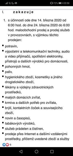 @marcicek84 Ano, maloobchodní prodej a prodej služeb v provozovnách se zakazuje. Výjimkou jsou prodejny (potravin,kosmetiky,...). Pokud teda rozumím textu správně.🙂