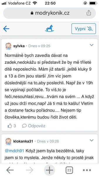 @sylvka Facka je nástroj, jak někoho totálně potupit. Zvlášť třináctiletého člověka. Na těch pár, co jsem dostala, vzpomínám dodnes s úzkostí. Ne, fakt mi nepomohly být lepším člověkem a víc poslouchat. Pomohly mi být lepším lhářem a umět zatloukat. Pokud je tohle podle tebe tak pravá cesta, jak budovat vztah s dětmi, bezva. Mně trvalo sakra dlouho, než jsem tohle mámě odpustila. @lidax Ne, nejsi špatná máma. Myslím, že skoro každý ujela ruka, i když si to potom vyčítala. Mě u druhého dítěte uklidňuje, když už vím, že každý období jednou skončí. I tohle naprosto šílený, kdy musí být všechno po jejich. Je to boj, i tyhle scény s oblékáním znám.