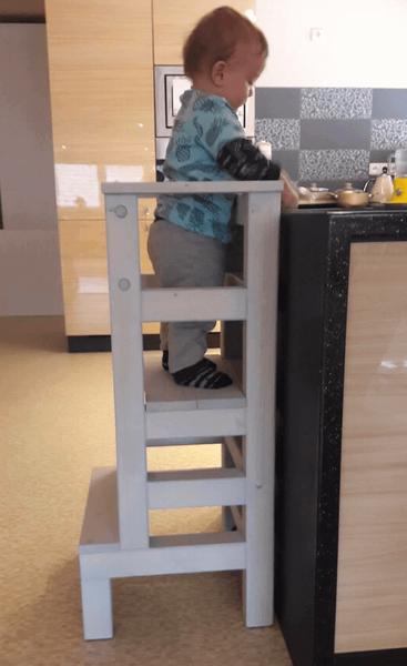 Syn mi asistoval od té doby, co se vydrápal na židli, v 17měsících dostal učící věž a ted je mu 2,5 a stále vaří se mnou. Přidržuje mixer, hází věci do hrnce, míchá, případně mu dám plech a dva kelímky a přelívá si vodu...Dřív mi vyndaval hrnce a misky ze šuplíků. Ted začal pomáhat s utíráním a uklízením nádobí. Sám od sebe...Určitě ho od toho nevyháním, sporák a trouba ví, že pálí, už se i trošičku spálil, ale věřím, že ho dokážu uhlídat před větším úrazem. Jeho to ale baví a fakt pomáhá, celkově, vyndává prádlo z pračky, sundává ze sušáku, už celkem dávno i pochopil, že před spaním je potřeba uklidit hračky. Takže já jsem pro dítě zapojit a neodhánět, případně ho nechat hrát si s něčím v kuchyni, kousek bokem od sporáku. Oni jsou ještě malí, nevydrží si sami hrát v pokojíčku delší dobu nebo vůbec