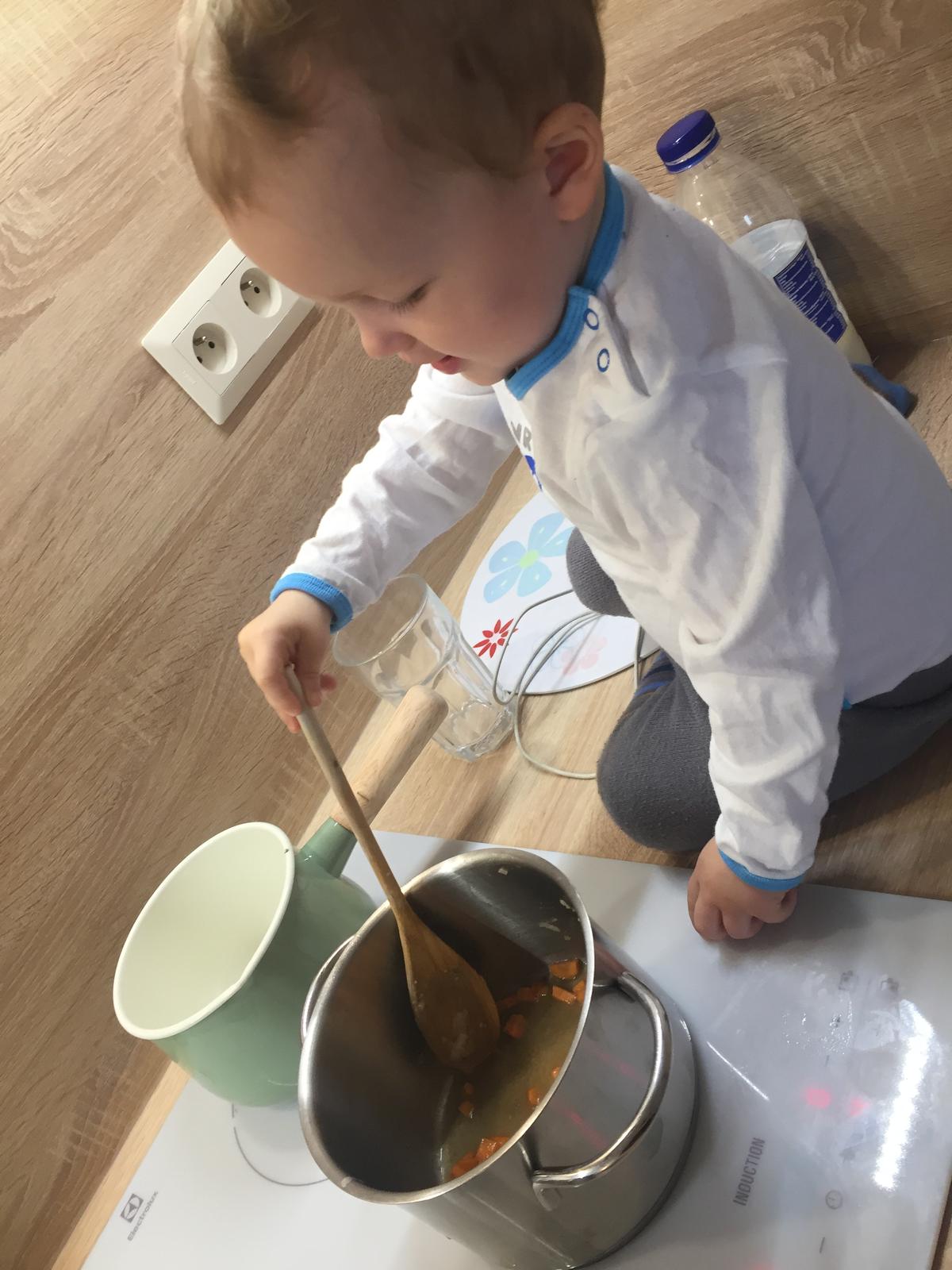 Nikde jsem se nedočetla, jak je děcko staré, ale u nás tohle bylo v době, kdy synkovi byl cca rok a půl. Tak jsem prostě vařila v době, kdy spal a čas, kdy chtěl být se mnou, jsem věnovala jemu. Nic jednoduššího.