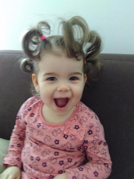presne jak je psano nademnou na tom nejde ani nic strihat, max ofinka podle "kastrolu"... mala ma taky uz delsi vlasky a musi mit sponecky nebo gumicky, ale vubec nevadi ze je ma cely den. ja taky nosim culik cely den jinak vlasy zavazi. a malou strasne bavi kdyz ji cesu a to ma vlasku jeste trochu vic... 😀