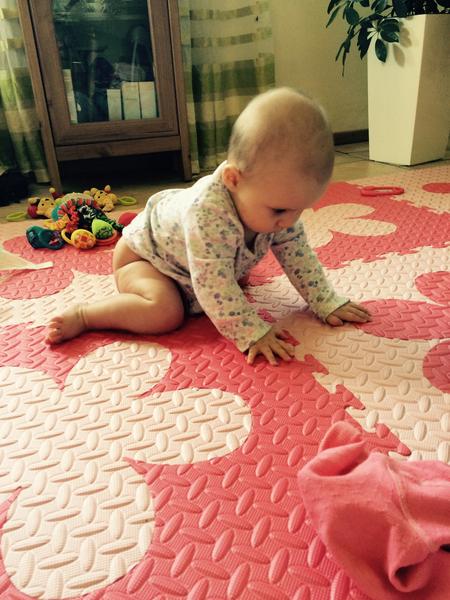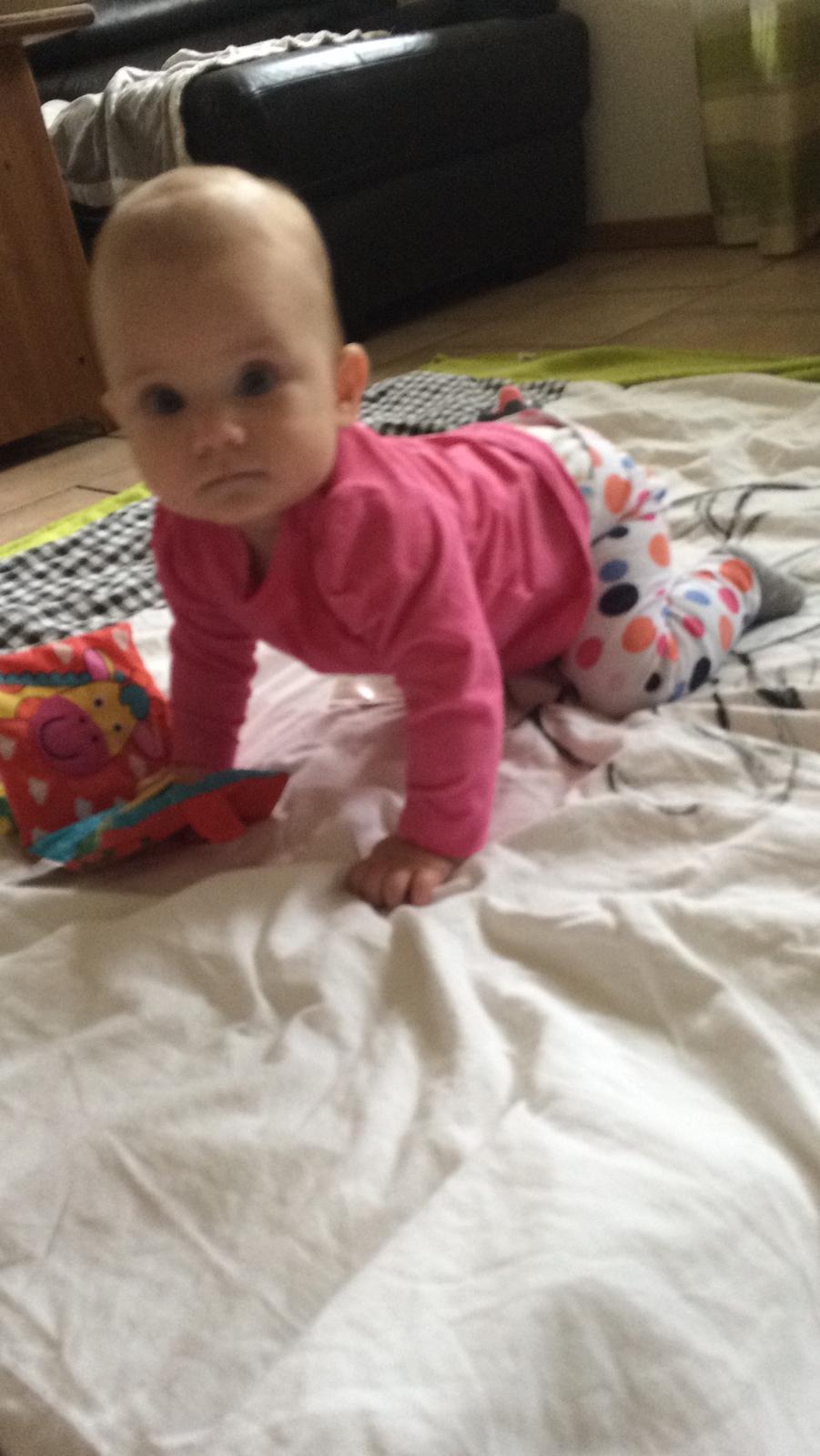 Naše malá ještě na začátku 9měsíce neseděla, nelezla, jen se plazila nebo zevlila na boku 😃Pořád mě to trápilo, že ještě nic a pak šup 1.1.2017 se postavila v postýlce a pak už to šlo naráz, leze po čtyřech, sedí a už tady pochoduje kolem nábytku. 😊