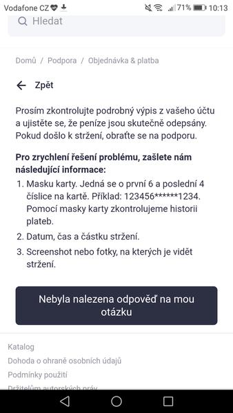 Jdu jim teda napsat no... a ještě potřebuju vědět jestli jim můžu psát česky? Já právě vůbec nevím jak jim mám napsat, že se mi peníze odečty, ale objednávka se nevytvořila.