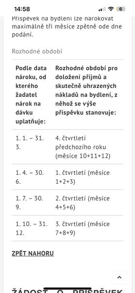 Zadost můžeš vyplnit klidně k prvnímu dni v měsíci, ale stejně musíš počkat, než ti mzdové v práci vyplní potvrzení o příjmu, takže realne lze Zadat nejdříve od poloviny měsíce. A jak píšeš, dokládají se příjmy za poslední čtvrtletí před žádosti. Takže když zadas od ledna, dokládá se říjen, listopad, prosinec. Na stránkách mají i tabulku docela přehlednou.
