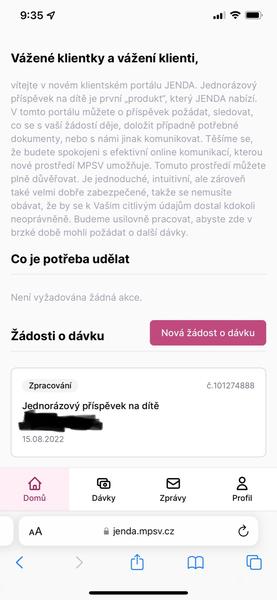 Vase zadost c. 100690755 se zpracovava. Aplikace https://jenda.mpsv.cz Klientsky portal MPSV.