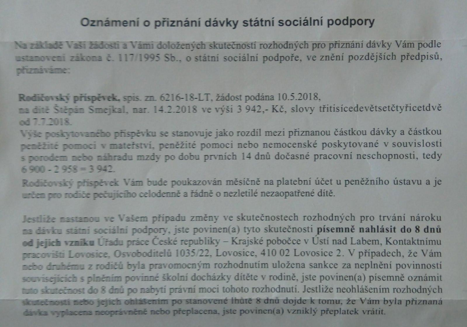 Rodičovský příspěvek, něco mi odečetli