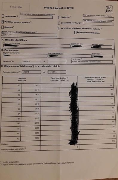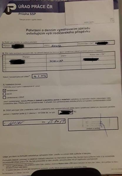 @hanaaprochazkova takže tohle je lejstro od zaměstnavatele - tzn. krok 1. Je na 2 stránky, fotím jenom první, to pro vysvětlení postačí.