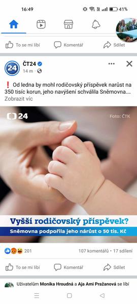 Ahoj, jsem ráda, že jsou tady ženský, které mají rozum. Jasný, rodicak není kdo ví jak vysoký, ale dítě jsme si dělali a počítali s tím, že si jej budeme živit a udělali jsme si i nějakou finanční rezervu, prostě nečekám s nataženýma rukama co dá stát. Myslím si, že by tohle akorát podporovalo jak tu někdo psal parazity, namakačenka a další.... Navíc, jako stát jsme zadlužení, takže zvyšovat asi není úplně rozumné
